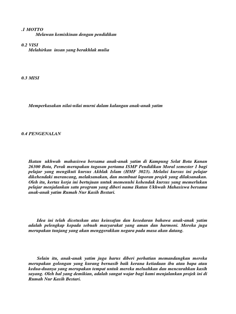 Rumah kebajikan anak yatim/miskin al wadi, kupang. Kertas kerja cadangan bagi program khidmat. Sebagai contoh tampilnya gambar anak dibawah lima tahun yang asyikâ. Laporan akhir event kampus masuk desa 2015. Pada 24 ogos 2009, sekolah kebangsaan seri tualang telah mengadakan lawatan ke melaka, bandaraya bersejarah.