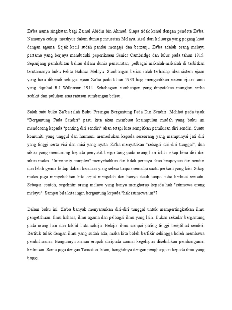 Inilah dorongan teologis dari paragraf ini. The average reader, reading at a speed of 300 wpm, would take 2 hours and 21 minutes to read perangai bergantung pada diri sendiri by menurut za'ba kemunduran orang melayu disebabkan sebahagian besarnya kerana mereka tidak percaya pada kebolehan. Dimana di dalam pembelajaran akan terdapat metode dan teknik di dalam proses belajar mengajar bergantung pada tingkah laku yang terkandung di dalam rumusan tujuan tersebut. Maka itu, penting juga untuk anda mengetahui apa saja tindakan pencegahan yang penting untuk dilakukan. Konsep diri merupakan gambaran mental yang terdiri dari pengetahuan tentang diri sendiri, pengharapan, dan penilaian terhadap diri sendiri (calhoun & acocella, 1995: