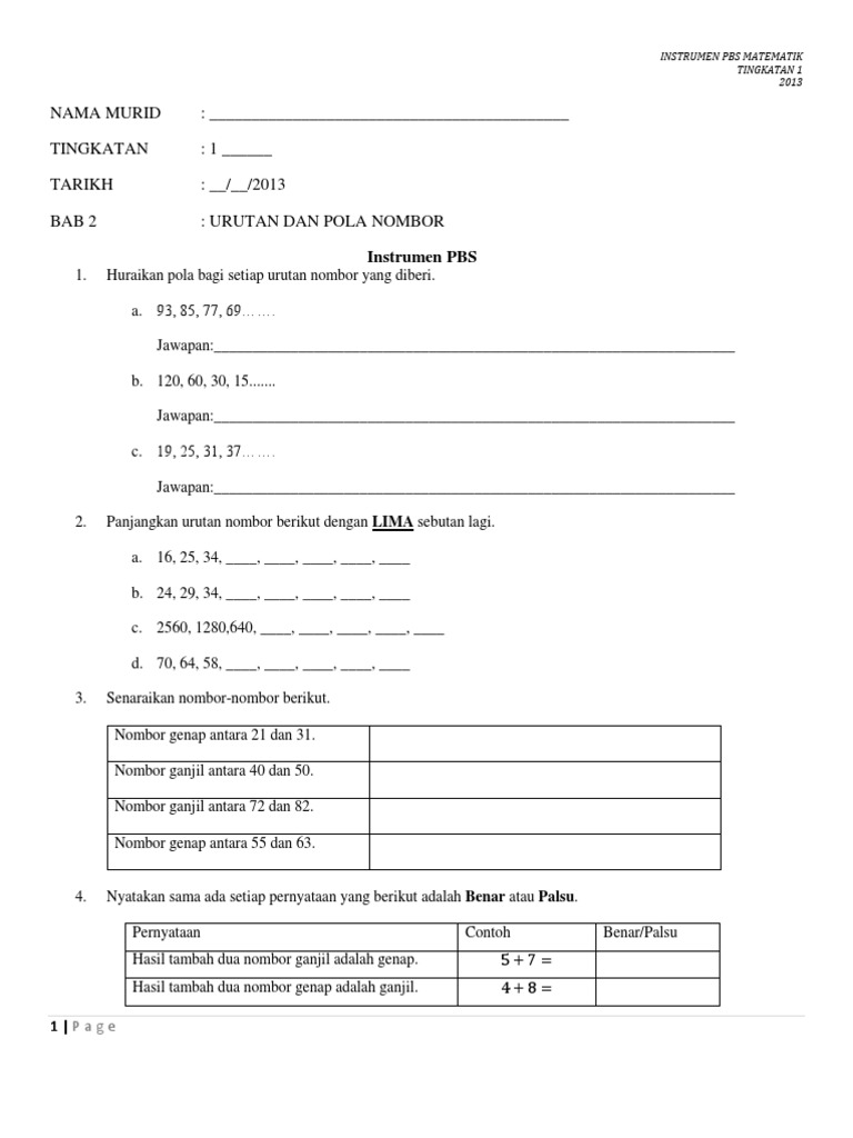 Latihan Matematik Tahun 4 5 Kelas Matematik Cikgu Kj Facebook from lookaside.fbsbx.com List all the odd numbers that less than 16. Pola nombor belajar berkenaan pola nombor samada menaik atau menurun id: Azan (pendidikan islam tahun 5) sortare în funcție de grup. Unit 2.0 soalan matematik tingkatan 2 pola dan jujukan Nombor bulat hingga 100standard kandungan: 1) huraikan pola nombor bagi urutan setiap nombor berikut 1. Matematik tahun 2 60 markah jawab semua soalan. Kedua, perpanjang stnk sekaligus ganti plat nomor kendaraan setiap 5 tahun sekali.